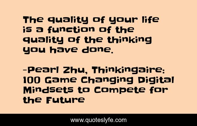 This page presents the quote "The quality of your life is a function of the quality of the thinking you have done.". Author of this quote is Pearl Zhu, Thinkingaire: 100 Game Changing Digital Mindsets to Compete for the Future. This quote is about thinking, quality, innovation,.