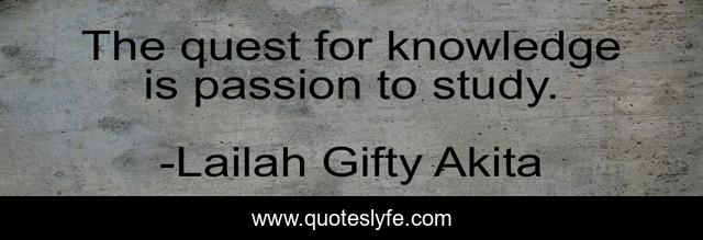 This page presents the quote "The quest for knowledge is passion to study.". Author of this quote is Lailah Gifty Akita. This quote is about study, education, knowledge, learning,.