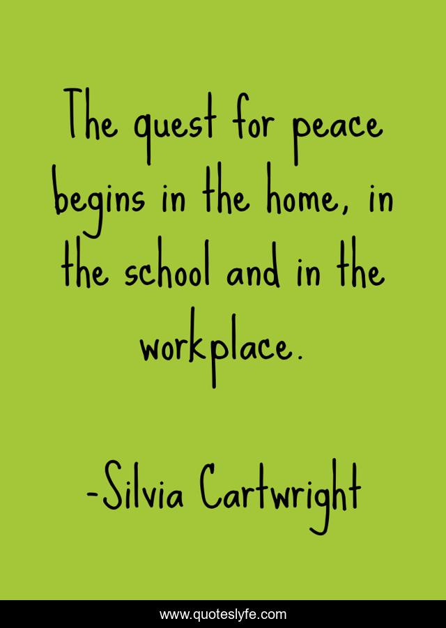 This page presents the quote "The quest for peace begins in the home, in the school and in the workplace.". Author of this quote is Silvia Cartwright. This quote is about home, school, quest,.
