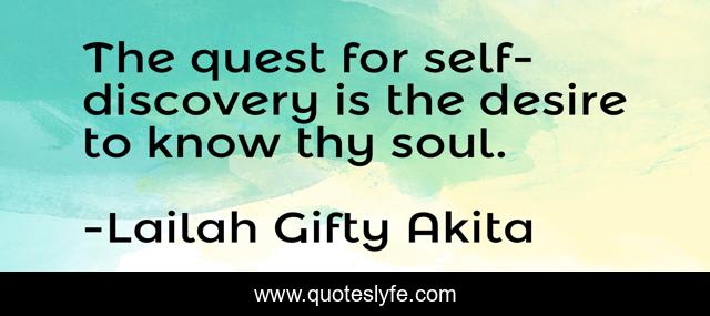 This page presents the quote "The quest for self-discovery is the desire to know thy soul.". Author of this quote is Lailah Gifty Akita. This quote is about spirituality, self-awareness, soul,.
