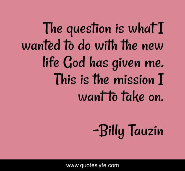 This page presents the quote "The question is what I wanted to do with the new life God has given me. This is the mission I want to take on.". Author of this quote is Billy Tauzin. This quote is about me, life,.