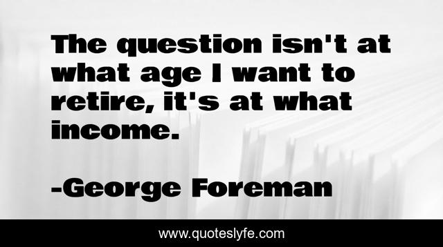 This page presents the quote "The question isn't at what age I want to retire, it's at what income.". Author of this quote is George Foreman. This quote is about retire, question,.