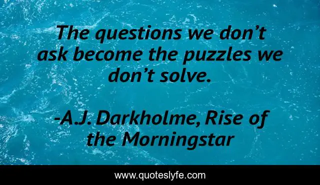 This page presents the quote "The questions we don’t ask become the puzzles we don’t solve.". Author of this quote is A.J. Darkholme, Rise of the Morningstar. This quote is about puzzles, solving-problems, answers, questions, questioning,.