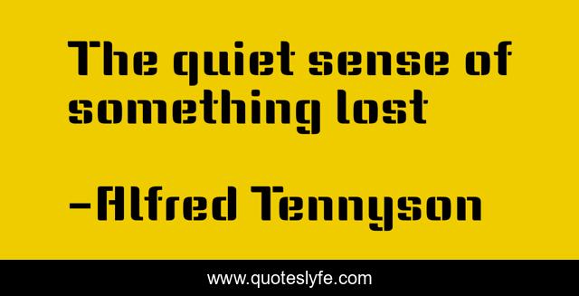 This page presents the quote "The quiet sense of something lost". Author of this quote is Alfred Tennyson. This quote is about quiet, lost, sense,.