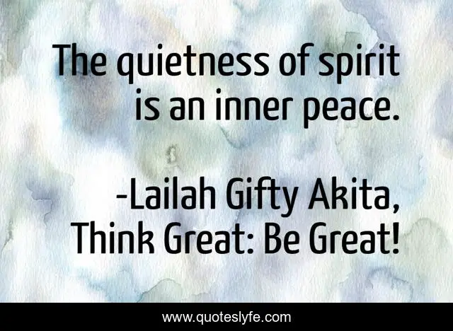 "Lailah Gifty Akita, Think Great: Be Great! Quotes." Quoteslyfe.com, 2025. Sat. 06 Dec. 2025. <https://www.quoteslyfe.com/quote/The-quietness-of-spirit-is-an-inner-169133>.