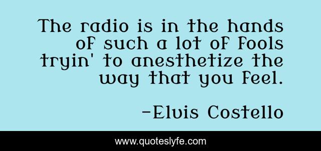 This page presents the quote "The radio is in the hands of such a lot of fools tryin' to anesthetize the way that you feel.". Author of this quote is Elvis Costello. .