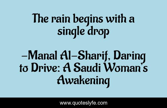 "Manal Al-Sharif, Daring to Drive: A Saudi Woman’s Awakening Quotes." Quoteslyfe.com, 2025. Fri. 05 Dec. 2025. <https://www.quoteslyfe.com/quote/The-rain-begins-with-a-single-drop-19889>.