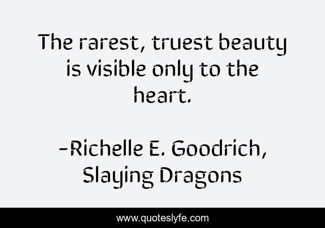 This page presents the quote "The rarest, truest beauty is visible only to the heart.". Author of this quote is Richelle E. Goodrich, Slaying Dragons. This quote is about beautiful, beauty, richelle-e-goodrich, true-beauty, quotes, richelle, richelle-goodrich,.