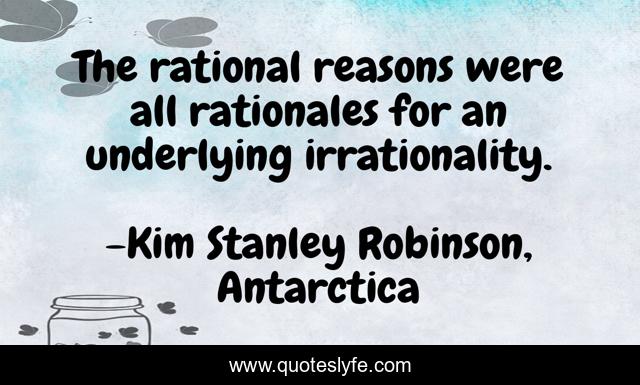 "Kim Stanley Robinson, Antarctica Quotes." Quoteslyfe.com, 2025. Mon. 08 Dec. 2025. <https://www.quoteslyfe.com/quote/The-rational-reasons-were-all-rationales-for-42377>.