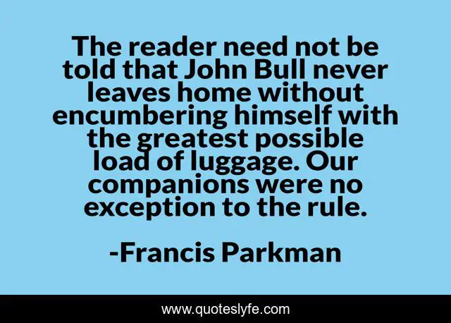 This page presents the quote "The reader need not be told that John Bull never leaves home without encumbering himself with the greatest possible load of luggage. Our companions were no exception to the rule.". Author of this quote is Francis Parkman. This quote is about need, greatest,.