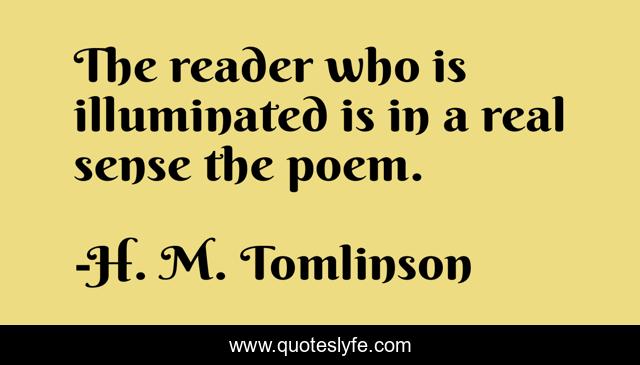 This page presents the quote "The reader who is illuminated is in a real sense the poem.". Author of this quote is H. M. Tomlinson. .
