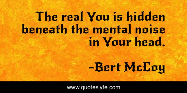 This page presents the quote "The real You is hidden beneath the mental noise in Your head.". Author of this quote is Bert McCoy. This quote is about the-now, love, consciousness, presence, peace, being-awake, awareness, presence-of-god, meditation,.