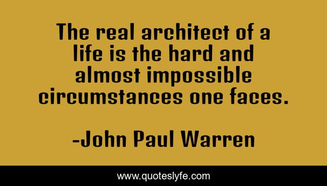 This page presents the quote "The real architect of a life is the hard and almost impossible circumstances one faces.". Author of this quote is John Paul Warren. This quote is about speakers, bible, positive, motivational, spiritual, leadership, pastors, inspirational, church,.