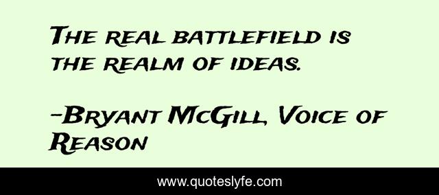 This page presents the quote "The real battlefield is the realm of ideas.". Author of this quote is Bryant McGill, Voice of Reason. This quote is about idealism, mind, debate, idea,.