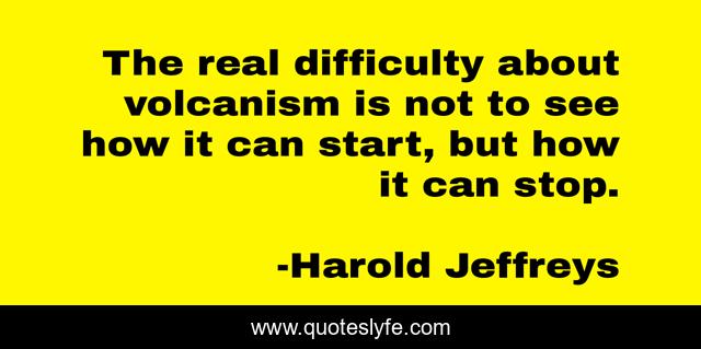This page presents the quote "The real difficulty about volcanism is not to see how it can start, but how it can stop.". Author of this quote is Harold Jeffreys. This quote is about science, difficulty, volcanism, volcanoes,.
