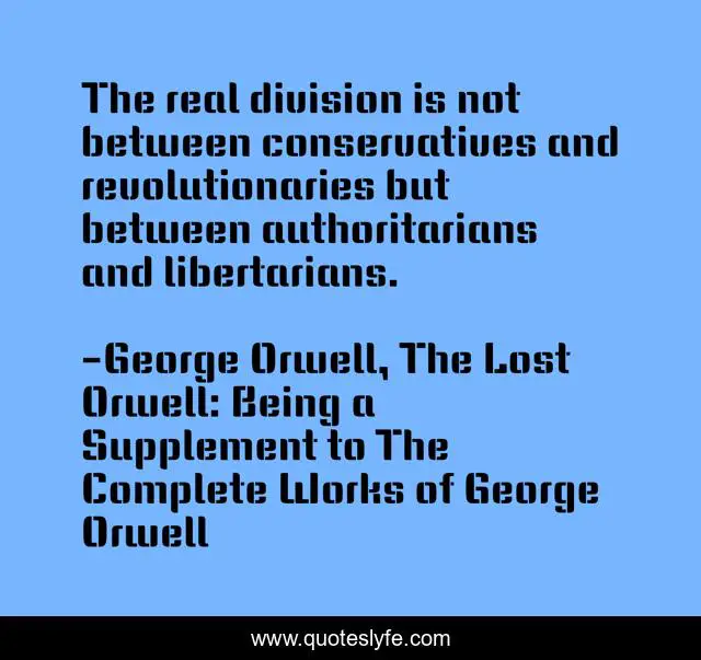 "George Orwell, The Lost Orwell: Being a Supplement to The Complete Works of George Orwell Quotes." Quoteslyfe.com, 2025. Fri. 05 Dec. 2025. <https://www.quoteslyfe.com/quote/The-real-division-is-not-between-conservatives-56762>.