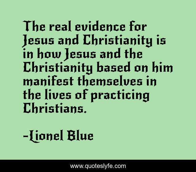 This page presents the quote "The real evidence for Jesus and Christianity is in how Jesus and the Christianity based on him manifest themselves in the lives of practicing Christians.". Author of this quote is Lionel Blue. This quote is about real, him, christianity,.