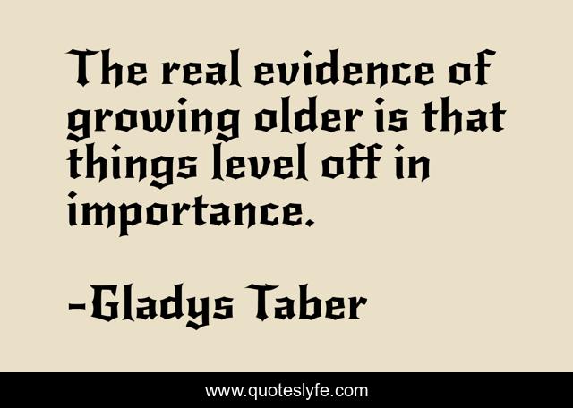 This page presents the quote "The real evidence of growing older is that things level off in importance.". Author of this quote is Gladys Taber. This quote is about self, confidence,.