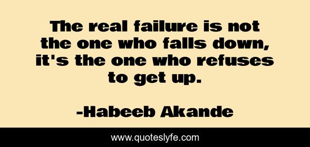This page presents the quote "The real failure is not the one who falls down, it's the one who refuses to get up.". Author of this quote is Habeeb Akande. This quote is about failure, motivarional, determination, perseverance,.