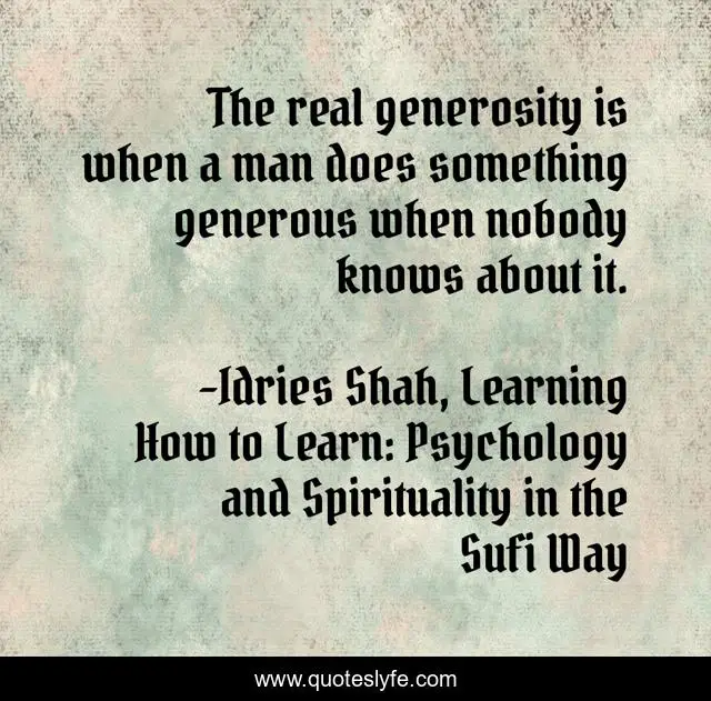 "Idries Shah, Learning How to Learn: Psychology and Spirituality in the Sufi Way Quotes." Quoteslyfe.com, 2025. Sat. 06 Dec. 2025. <https://www.quoteslyfe.com/quote/The-real-generosity-is-when-a-man-117274>.