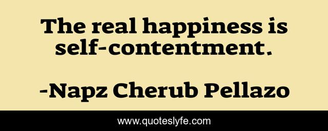 This page presents the quote "The real happiness is self-contentment.". Author of this quote is Napz Cherub Pellazo. This quote is about enthusiasm, life, real-happiness, inspirational, self-contentment,.