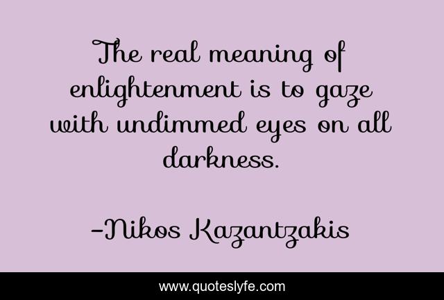 This page presents the quote "The real meaning of enlightenment is to gaze with undimmed eyes on all darkness.". Author of this quote is Nikos Kazantzakis. This quote is about meaning, eyes, darkness,.