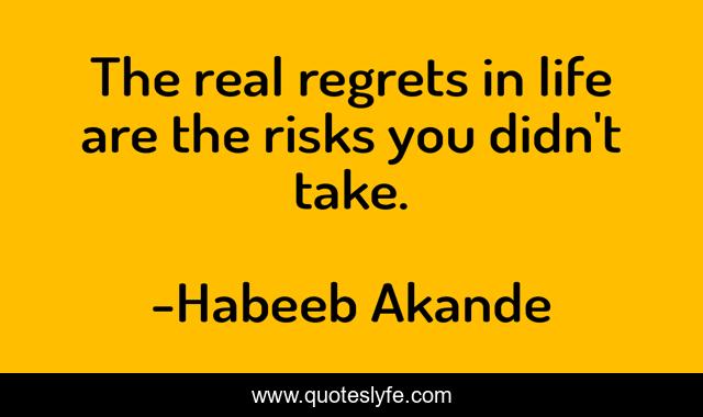 This page presents the quote "The real regrets in life are the risks you didn't take.". Author of this quote is Habeeb Akande. This quote is about life, regret, risks,.