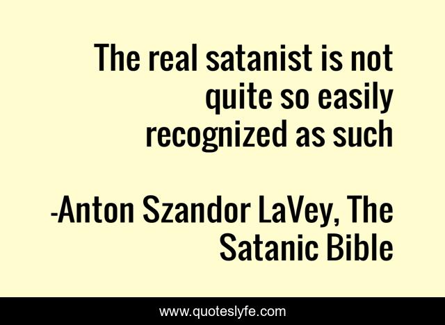 "Anton Szandor LaVey, The Satanic Bible Quotes." Quoteslyfe.com, 2025. Sat. 06 Dec. 2025. <https://www.quoteslyfe.com/quote/The-real-satanist-is-not-quite-so-56557>.