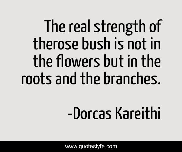 This page presents the quote "The real strength of therose bush is not in the flowers but in the roots and the branches.". Author of this quote is Dorcas Kareithi. This quote is about enthusiasm, thought-provoking, inspirational,.