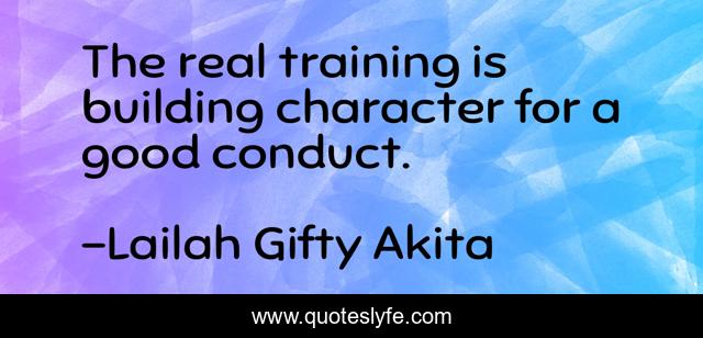 This page presents the quote "The real training is building character for a good conduct.". Author of this quote is Lailah Gifty Akita. This quote is about training, positive, motivational, character, confidence, optimistic, conduct, education,.
