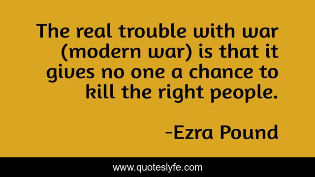 This page presents the quote "The real trouble with war (modern war) is that it gives no one a chance to kill the right people.". Author of this quote is Ezra Pound. This quote is about real, chance, people,.