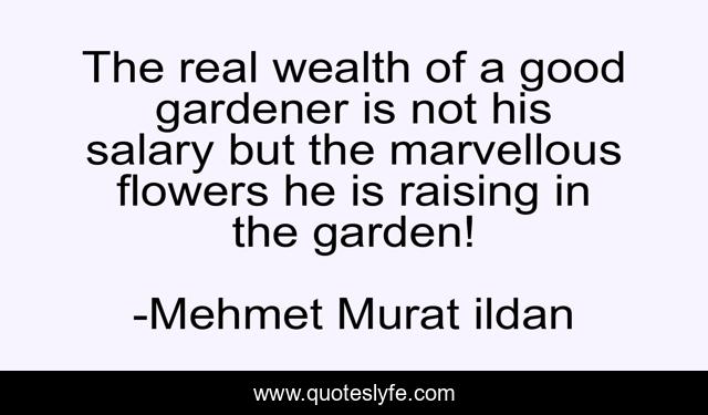 This page presents the quote "The real wealth of a good gardener is not his salary but the marvellous flowers he is raising in the garden!". Author of this quote is Mehmet Murat ildan. .