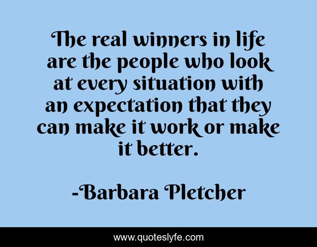 This page presents the quote "The real winners in life are the people who look at every situation with an expectation that they can make it work or make it better.". Author of this quote is Barbara Pletcher. .