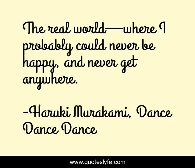 This page presents the quote "The real world—where I probably could never be happy, and never get anywhere.". Author of this quote is Haruki Murakami, Dance Dance Dance. This quote is about dance-dance-dance, real-world, sadness, happiness, world,.