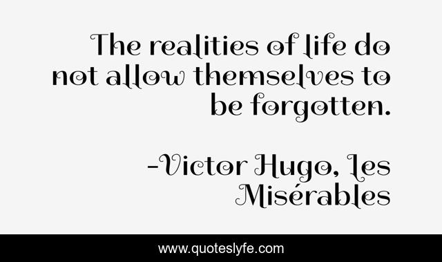 This page presents the quote "The realities of life do not allow themselves to be forgotten.". Author of this quote is Victor Hugo, Les Misérables. .