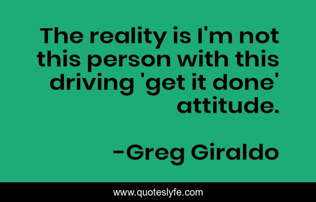 This page presents the quote "The reality is I'm not this person with this driving 'get it done' attitude.". Author of this quote is Greg Giraldo. This quote is about done, driving, reality,.