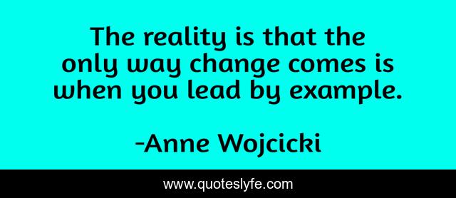 This page presents the quote "The reality is that the only way change comes is when you lead by example.". Author of this quote is Anne Wojcicki. This quote is about lead by example, reality,.
