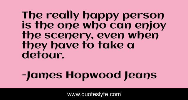 This page presents the quote "The really happy person is the one who can enjoy the scenery, even when they have to take a detour.". Author of this quote is James Hopwood Jeans. This quote is about scenery, detour, happiness,.