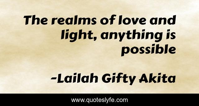 This page presents the quote "The realms of love and light, anything is possible". Author of this quote is Lailah Gifty Akita. This quote is about spiritual, love, light, inspirational, enthusiasm, forgiveness, affection,.