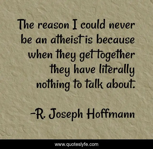 This page presents the quote "The reason I could never be an atheist is because when they get together they have literally nothing to talk about.". Author of this quote is R. Joseph Hoffmann. This quote is about atheism, r-joseph-hoffmann,.