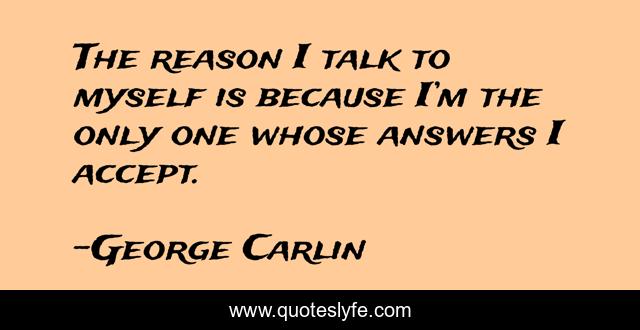 "George Carlin Quotes." Quoteslyfe.com, 2025. Sat. 06 Dec. 2025. <https://www.quoteslyfe.com/quote/The-reason-I-talk-to-myself-is-5334>.