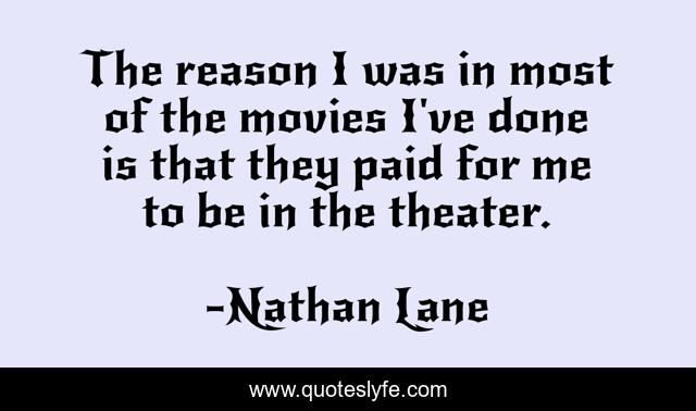 This page presents the quote "The reason I was in most of the movies I've done is that they paid for me to be in the theater.". Author of this quote is Nathan Lane. This quote is about me, reason, done,.