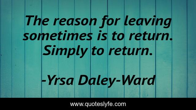 This page presents the quote "The reason for leaving sometimes is to return. Simply to return.". Author of this quote is Yrsa Daley-Ward. This quote is about loss, love, affection, leaving,.
