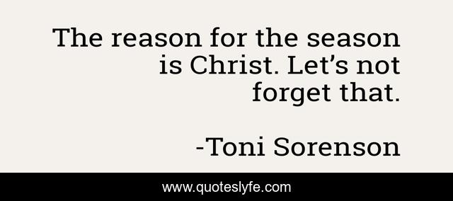 This page presents the quote "The reason for the season is Christ. Let’s not forget that.". Author of this quote is Toni Sorenson. This quote is about christmas, christ, holidays,.