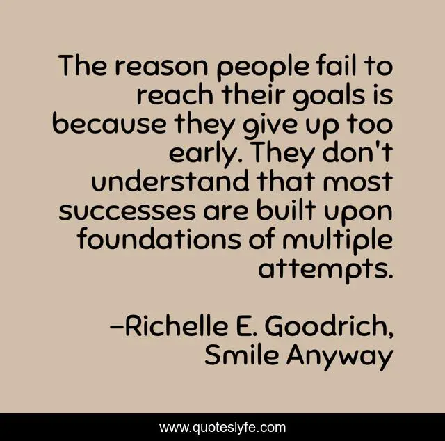 "Richelle E. Goodrich, Smile Anyway Quotes." Quoteslyfe.com, 2025. Mon. 08 Dec. 2025. <https://www.quoteslyfe.com/quote/The-reason-people-fail-to-reach-their-141372>.
