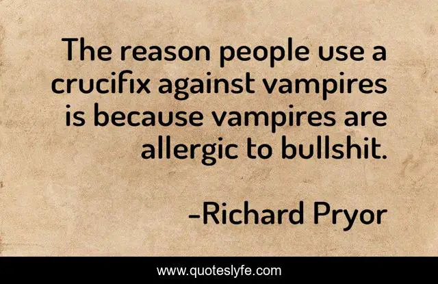 This page presents the quote "The reason people use a crucifix against vampires is because vampires are allergic to bullshit.". Author of this quote is Richard Pryor. This quote is about atheism, religion, humor, vampires,.