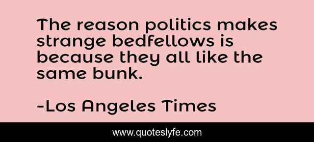 "Los Angeles Times Quotes." Quoteslyfe.com, 2025. Sat. 06 Dec. 2025. <https://www.quoteslyfe.com/quote/The-reason-politics-makes-strange-bedfellows-is-149353>.