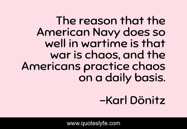 This page presents the quote "The reason that the American Navy does so well in wartime is that war is chaos, and the Americans practice chaos on a daily basis.". Author of this quote is Karl Dönitz. This quote is about americans, chaos, war,.