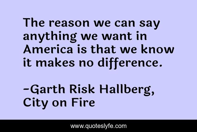 This page presents the quote "The reason we can say anything we want in America is that we know it makes no difference.". Author of this quote is Garth Risk Hallberg, City on Fire. .