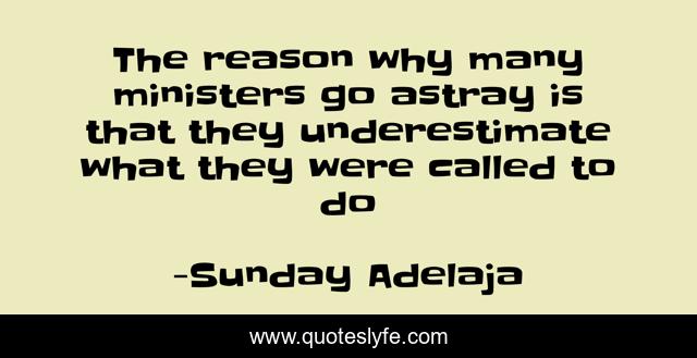This page presents the quote "The reason why many ministers go astray is that they underestimate what they were called to do". Author of this quote is Sunday Adelaja. This quote is about minister, fulfillment, calling, goals, backsliding, purpose,.